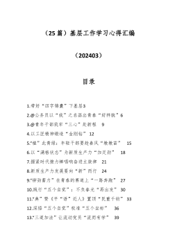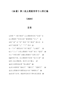 (28篇)学习总书记《序言》暨第六批全国干部学习培训教材心得体会汇编(202404)目录1.聆听“序”语砥砺“奋斗之姿”32.研学《序言》:谱写中国式现代化“心”篇章63.聆听春日“序”语校准“青春坐标”94.在循“序”渐进中绘就奋斗“最美图鉴”125.从研学《序言》中汲取奋进“三力”156.锚定《序言》“航标”驶好“奋进之舟”187.聆听春日“序”语奏响“奋进强音”218.感悟“序言”让干部教育培训如“春风”拂面249.解锁“序言”密码绘就年轻干部“成长蓝图”2710.以“三思”明“三志”绘好“干部成长”图3011.三笔连书“序”写干部教育培训“劝学篇”3312.研读《序言》奥义书写春日“序...