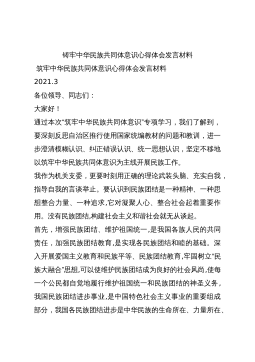 铸牢中华民族共同体意识心得体会发言材料筑牢中华民族共同体意识心得体会发言材料2021.3各位领导、同志们:大家好!通过本次“筑牢中华民族共同体意识”专项学习,我们了解到,要深刻反思自治区推行使用国家统编教材的问题和教训,进一步澄清模糊认识、纠正错误认识、统一思想认识,坚定不移地以筑牢中华民族共同体意识为主线开展民族工作。我作为机关支委,更要时刻用正确的理论武装头脑、充实自我,指导自我的言谈举止。要认识到民族团结是一种精神、一种思想整合力量、一种追求,它对凝聚人心、整合社会起着重要作用。没有民族团结,构建社会主义和谐社会就无从谈起。首先,增强民族团结、维护祖国统一,是我国各族人民的共同责任,加强...