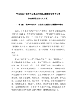 学习在二十届中央纪委二次全会上重要讲话精神心得体会研讨发言(共九篇)1、学习在二十届中央纪委二次全会上重要讲话精神心得体会近日,习近平总书记在中国共产党第二十届中央纪律检查委员会第二次全体会议上发表重要讲话时强调,"要坚持严管和厚爱结合、激励和约束并重,坚持‘三个区分开来’更好激发广大党员、干部的积极性、主动性、创造性,形成奋发新征程、建功新时代的浓厚氛围和生动局面。’'作为组织部门要认真领会习近平总书记的讲话精神,通过树立良好导向,健全考核机制,坚持严管厚爱等举措,真正让有为者有位、让无为者无位,进一步激励广大领导干部新时代新担当新作为。把唯干部任用"入口关",坚持选任从严,筑牢“...