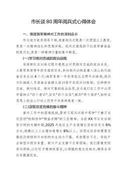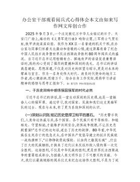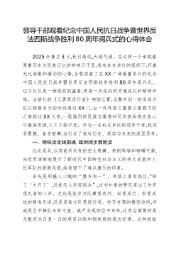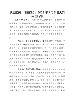 国企集团党委书记关于观看纪念抗战胜利80周年阅兵式的心得体会2025年9月3日,这是一个镌刻在中华民族史册上,更将永远铭记于世界历史丰碑上的光辉日子。今天,作为一名在党培养多年的机关单位干部,我怀着无比激动和崇敬的心情,在集团党委会议室与同志们一道,全程观看了在北京XX广场隆重举行的纪念中国人民抗日战争暨世界反法西斯战争胜利80周年阅兵式。屏幕上,铁甲奔流,战鹰呼啸;屏幕外,心潮澎湃,热泪盈眶。这不仅仅是一场军队的检阅,更是一次国家力量的展示,一次民族精神的洗礼,一堂生动深刻的爱国主义教育课。阅兵式所带来的震撼与启示,如滚滚春雷,在我心中久久回响,激励着我以更加坚定的信念和饱满的热情,投身于新时代的伟大事业。如来写作网◇原创内↓容一、钢铁洪流铸就强国之魂,雄壮军威振奋民族精神当雄壮的《义勇军...
