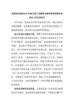 县委组织部部长在“先锋引领”工程暨党员教育管理质量年推进会上的交流发言