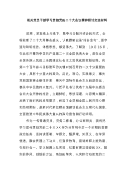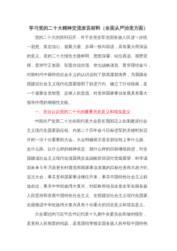 二十大交流研讨材料:学深悟透党的二十大精神奋力走好新时代新征程10月16日,中国共产党第二十次全国代表大会在北京胜利召开,大会在全党全国各族人民迈上全面建设社会主义现代化国家新征程、向第二个百年奋斗目标进军的关键时刻召开,是一次高举旗帜、凝聚力量、团结奋进的大会,在党和国家发展进程中具有极其重大的历史意义。习近平总书记代表十九届中央委员会向大会作的报告,回顾总结了过去五年的工作和新时代十年的伟大变革,对全面建设社会主义现代化国家、全面推进中华民族伟大复兴进行了战略谋划,对统筹推进“五位一体”总体布局、协调推进“四个全面”战略布局作出了全面部署,为新时代新征程党和国家事业发展、实现第二个百年奋斗...