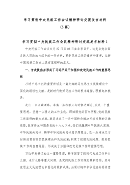 (5篇)学习贯彻中央民族工作会议精神研讨交流发言材料