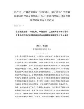 谢占武:在县政府党组“不忘初心、牢记使命”主题教育学习研讨会议暨全县经济运行和第四