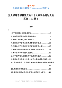 本文仅供学习参考,请勿照搬照抄!学习中青年干部培训班开班式重要讲话精神感悟研讨发言(15篇,2.1万字)目录矢志奋斗新征程共谱新时代新篇章严守“五关”,争做清正廉洁表率勇担时代重任谱写青春华章人才是“用”出来的,良将是“打造”出来的真干才能真出业绩、出真业绩“深挖矿”“高筑墙”“广积粮”以青春之力续写奋进华章向阳而生,厚植为民情怀永葆初心,坚毅前行年轻干部要淬炼“接班本领”“踏浪而行”上好“开班第一课”年轻干部守好“五关”肩负起时代的使命从伟人身上汲取智慧提升理论素养在新时代新征程上留下无悔的奋斗足迹在坚持敢于斗争中走好新的赶考之路年轻干部必须牢记清廉是福、贪欲是...
