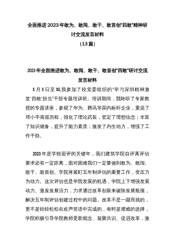 (13篇)全面推进2023年敢为、敢闯、敢干、敢首创“四敢”精神研讨交流发言材料