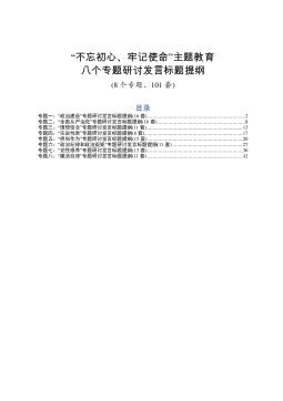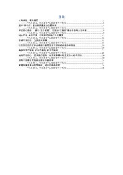 目录在读原著学原文悟原理中坚守初心砥砺使命中共河南省委书记王国生............................................................................................-1-用科学理论武装头脑让思想灯塔照亮初心河南省委副书记、省长陈润儿....................................................................................-7-努力把党建设得更加坚强有力更好坚守赤诚初心担负历史使命河南省委副书记、政法委书记喻红秋...............