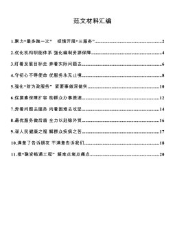 各种层级农村人居环境整治经验交流材料目录“四个一”确保农村环境综合整治常态化.....................25项工程推动改善农村人居环境...............................5关于深入学习浙江“千村示范、万村整治”工程经验扎实推进农村人居环境整治工作的报告............................9规划引领农村人居环境治理.....................................18农村人居环境整治三年行动方案..............................20加压增责多措并举精心营造舒适净美农村人居环境.........