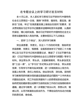 常务副区长在区委理论中心组2023年第二次专题集中学习会上的研讨发言材料同志们:党的贰拾DA报告作出“加快构建新发展格局,着力推动高质量发展”的重大部署,对新征程上加快构建新发展格局、着力推动高质量发展提出明确要求,强调“高质量发展是全面建设社会主义现代化国家的首要任务”。按照区委理论学习中心组的部署要求,本人围绕XXX新时代中国特色社会主义思想和党的贰拾DA精神研讨班上的重要讲话精神、习近平总书记视察**省重要讲话和对**省工作系列重要指示精神,结合工作实际谈几点认识和学习体会。一、提高政治站位,深学细悟笃行习近平总书记关于高质量发展的重要论述,立意高远、思想深邃、内涵丰富,为做好**区工作...
