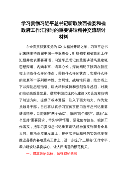 学习贯彻习近平总书记听取陕西省委和省政府工作汇报时的重要讲话精神交流研讨材料