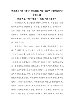 (3篇)坚定捍卫“两个确立”坚决做到“两个维护”专题研讨发言材料范文
