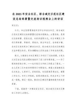 在2021年安全社区、综合减灾示范社区建设总结部署暨交流培训视频会上的讲话