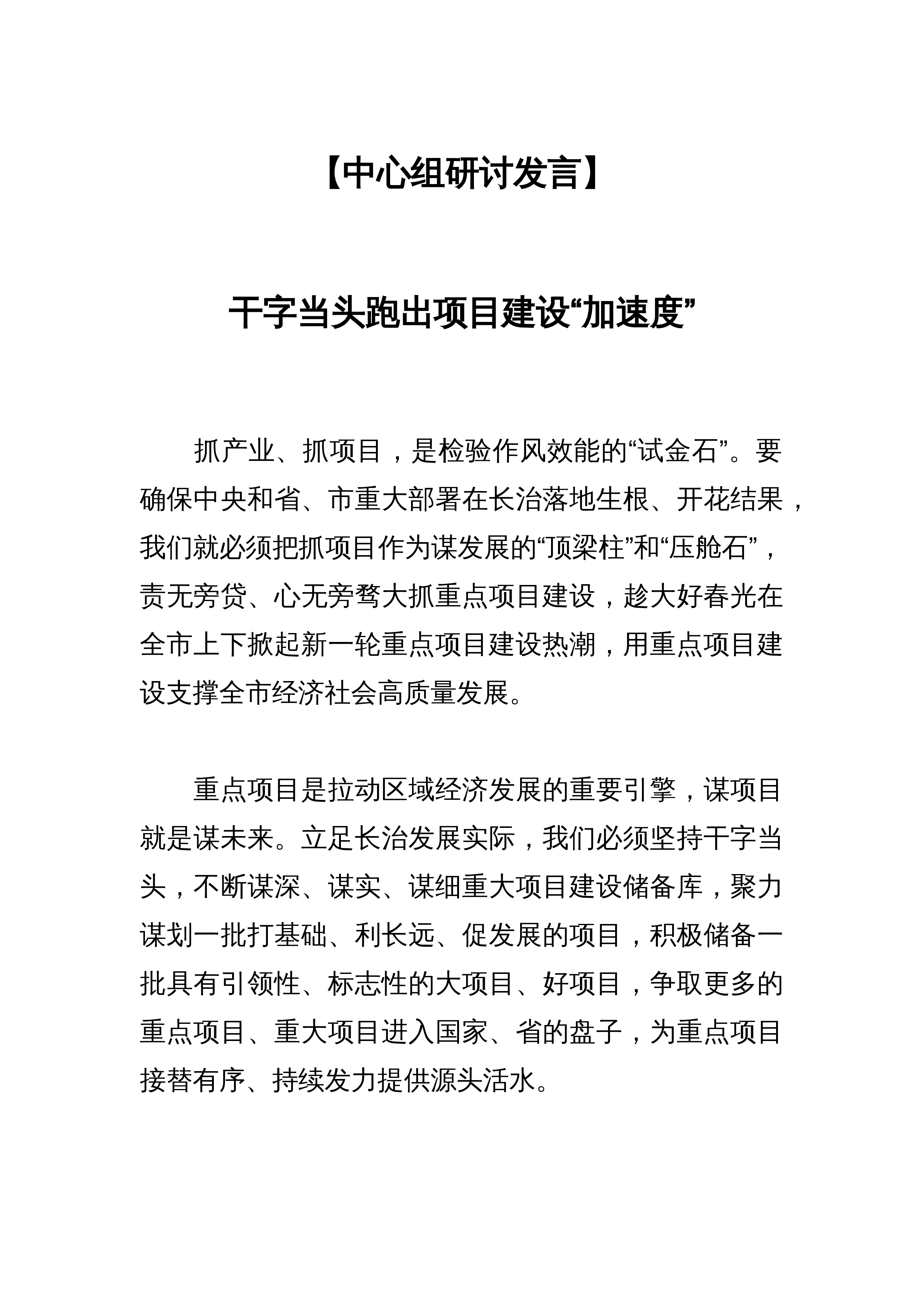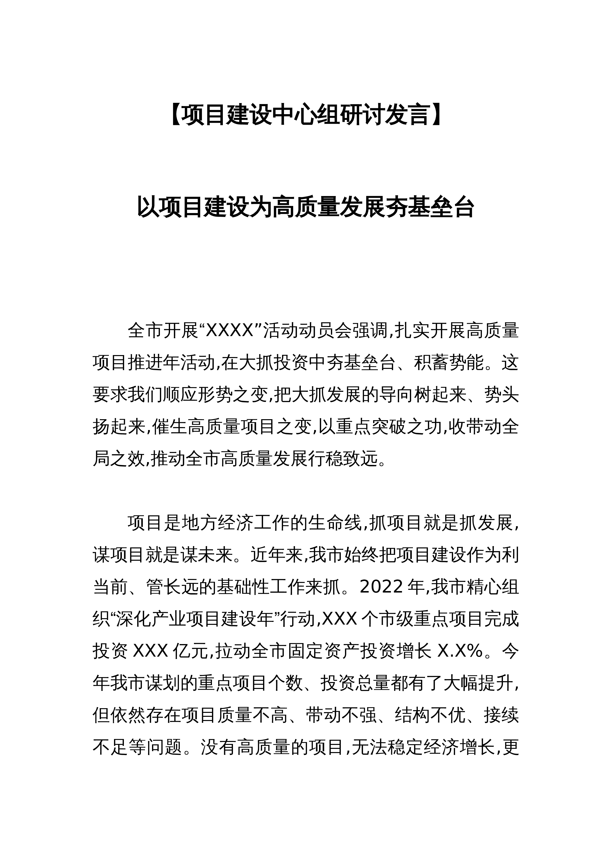 【项目建设中心组研讨发言】以项目建设为高质量发展夯基垒台