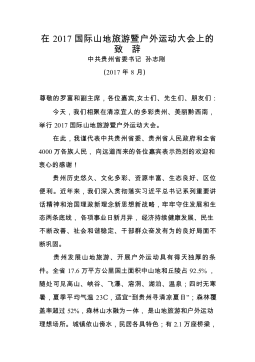 致辞7:书记致辞(贵州省委书记孙志刚在2017国际山地旅游暨户外运动大会上的致辞)