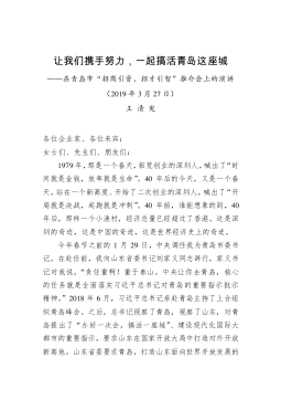 青岛市委书记王清宪在2020青岛·全球创投风投网络大会上的主旨演讲