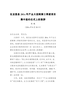 在龙里县201x年产业大招商第三季度项目集中签约仪式上的致辞
