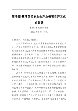 新希望•夏津现代农业全产业链项目开工仪式致辞