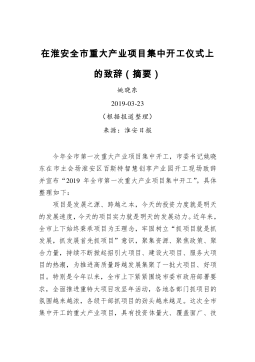 姚晓东:在淮安全市重大产业项目集中开工仪式上的致辞(摘要)