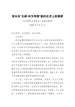 校长在“北邮-华为学院”签约仪式上的致辞