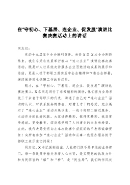 在守初心下基层连企业促发展演讲比赛决赛活动上的讲话