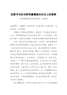 区委书记在与药明康德签约仪式上的致辞