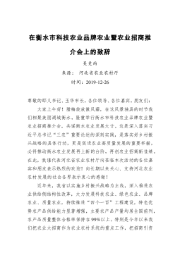 吴更雨:在衡水市科技农业品牌农业暨农业招商推介会上的致辞