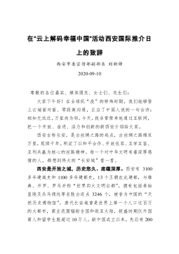 刘新锋:在“云上解码幸福中国”活动西安国际推介日上的致辞(20200910)