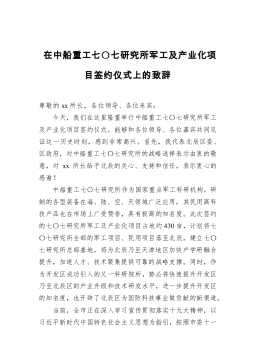 在中船重工七〇七研究所军工及产业化项目签约仪式上的致辞