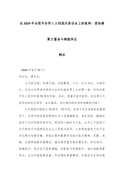 在2024年合肥市各界人士迎国庆茶话会上的致辞:团结凝聚力量奋斗铸就伟业
