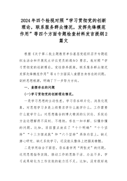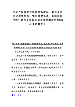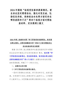 2024年围绕“检视党性修养提高情况,看自身在坚定理想信念、强化对党忠诚、弘扬优良传统、保持政治本色等方面还存在哪些差距和不足”等四个检视方面对照检查材料、发言提纲2篇文