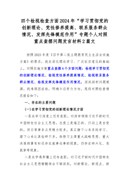 2024年党支部班子“加强党员教育管理监督、执行上级组织决定、严格组织生活、联系服务群众、抓好自身建设”等六方面存在的问题及不足对照检查材料2篇在新时代的伟大事业中,我们党支部班子始终坚持以习近平新时代中国特色社会主义思想为指导,紧紧围绕学思想、强党性、重实践、建新功的总要求,凝心铸魂,筑牢根本,锤炼品格,强化忠诚,实干担当,促进发展,践行宗旨,为民造福,廉洁奉公,树立新风。为了深入学习和领悟以学铸魂、以学增智、以学正风、以学促干的丰富内涵和实践要求,我们积极开展批评和自我批评,检视问题抓好整改,推动形成统一思想、统一意志、统一行动。在这个过程中,我们坚定拥护“两个确立”,坚决做到“两个维护”...