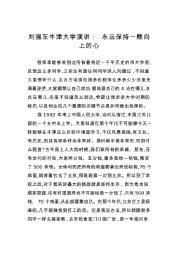 刘强东牛津大学演讲:永远保持一颗向上的心很荣幸能够来到这所有着将近一千年历史的伟大学府,见到这么多同学,之前没有跟任何同学深入沟通过,不知道大家想听什么,主办方说现在很多在校学生多多少少还是充满着迷茫,大家都想让自己成功,都知道自己的A点在哪儿,B点在哪儿,但是不知道怎么到达,希望让我讲讲大学时期的经历,以及创业后几个重要的关键节点是如何做出选择的。我1992年考上中国人民大学,当时从宿迁,中国江苏北部的一个乡村去上学。大家知道在那个年代不可能像今天一样能够在牛津这么好的环境里学习,不仅风景美丽,有文化、有历史,而且各项条件也非常好。那时候中国非常穷,穷到什么程度?当年我上人大的时候,我们家所...