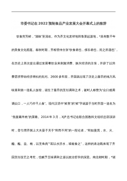 市委书记在2022预制食品产业发展大会开幕式上的致辞范文
