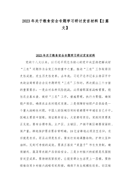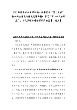 2023年粮食安全党课讲稿:牢牢把住“国之大者”粮食安全底线与廉政党课讲稿:牢记“两个永远在路上”,持之以恒推进全面从严治党【二篇文】