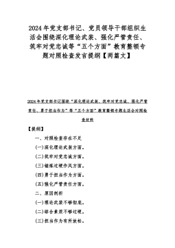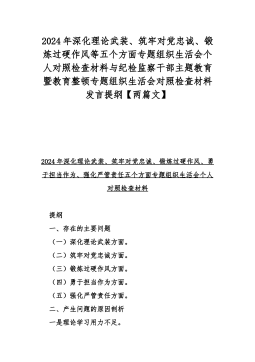 2024年深化理论武装、筑牢对党忠诚、锻炼过硬作风等五个方面专题组织生活会个人对照检查材料与纪检监察干部主题教育暨教育整顿专题组织生活会对照检查材料发言提纲【两篇文】