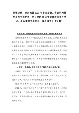 党课讲稿:深刻把握2023年中央金融工作会议精神要点与专题党课:学习党的XX大党章修改的九个要点,全面掌握党章要求,做合格党员【两篇】