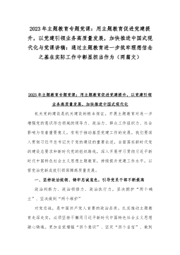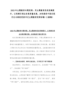 2023年高校党委书记主题教育党课讲稿与主题教育专题党课讲稿:扎实开展主题教育,以党建赋能深化国企改革,实现企业高质量发展【两篇文】
