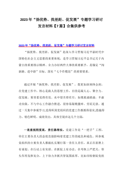 2023年“扬优势、找差距、促发展”专题学习研讨发言材料【7篇】合集供参考