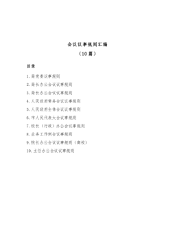 会议议事规则汇编(10篇)目录1.局党委议事规则2.局长办公会议议事规则3.局长办公会议议事规则4.人民政府常务会议议事规则5.人民政府全体会议议事规则6.市人民代表大会议事规则7.校长(行政)办公会议事规则8.业务工作例会议事规则9.院长办公会议议事规则(高校)10.主任办公会议议事规则局党委议事规则为进一步规范和改进党委工作,坚持和加强党的全面领导,切实加强党委自身建设,全面正确地贯彻民主集中制,建立科学规范的局党委议事制度,完善党委决策机制,实现决策的民主化、科学化、程序化和制度化,充分发挥党委的集体领导作用,根据《中国共产党章程》有关规定和上级有关文件精神,特制定局党委议事规则。一、党...