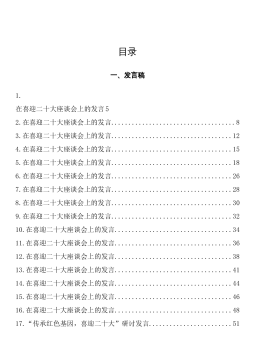 目录一、发言稿1.在喜迎二十大座谈会上的发言52.在喜迎二十大座谈会上的发言....................................83.在喜迎二十大座谈会上的发言...................................124.在喜迎二十大座谈会上的发言...................................155.在喜迎二十大座谈会上的发言...................................186.在喜迎二十大座谈会上的发言...................................267.在喜迎二十大座谈会上的发言.....
