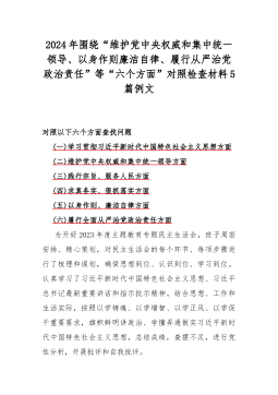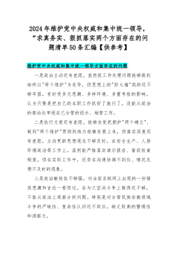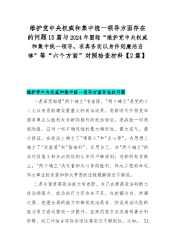 维护党中央权威和集中统一领导方面存在的问题15篇与2024年围绕“维护党中央权威和集中统一领导,求真务实以身作则廉洁自律”等“六个方面”对照检查材料【2篇】