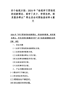 四个检视方面:2024年“检视学习贯彻党的创新理论、看学了多少、学得怎样,联系服务群众”等生活会对照检查材料4篇文