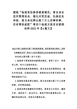 围绕“检视党性修养提高情况,看自身在坚定理想信念、强化对党忠诚、弘扬优良传统、看为身边群众做了什么实事好事,还有哪些差距”等四个检视方面发言提纲材料2023年【4篇文】
