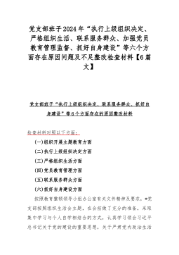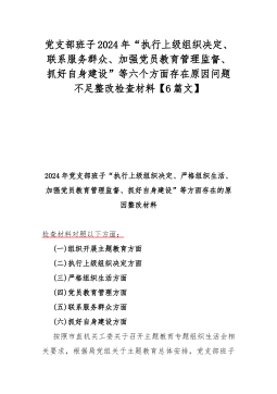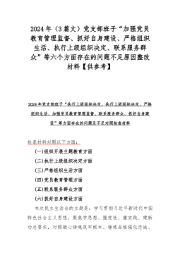 2024年(3篇文)党支部班子“加强党员教育管理监督、抓好自身建设、严格组织生活、执行上级组织决定、联系服务群众”等六个方面存在的问题不足原因整改材料【供参考】