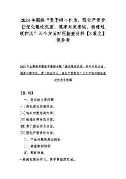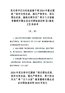 2024年(3篇文)党支部班子“加强党员教育管理监督、抓好自身建设、严格组织生活、执行上级组织决定、联系服务群众”等六个方面存在的问题不足原因整改材料【供参考】2024年党支部班子“执行上级组织决定、执行上级组织决定、严格组织生活、加强党员教育管理监督、联系服务群众、抓好自身建设”等方面存在的问题及不足对照检查材料检查材料对照以下方面:(一)组织开展主题教育方面(二)执行上级组织决定方面(三)严格组织生活方面(四)党员教育管理方面(五)联系服务群众方面(六)抓好自身建设方面本次民主生活会的主题是:学习贯彻习近平新时代中国特色社会主义思想,聚焦学思想、强党性、重实践、建新功总要求,对照凝心铸魂筑...