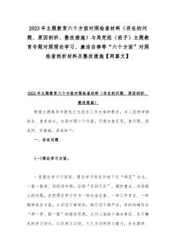 2023年主题教育六个方面对照检查材料(存在的问题、原因剖析、整改措施)与局党组(班子)主题教育专题对照理论学习、廉洁自律等“六个方面”对照检查剖析材料及整改措施【两篇文】
