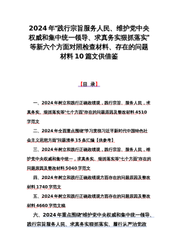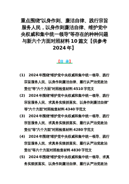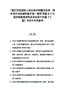 重点围绕“以身作则、廉洁自律、践行宗旨服务人民,以身作则廉洁自律、维护党中央权威和集中统一领导”等存在的种种问题与新六个方面对照材料10篇文【供参考2024年】
