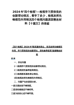 2024年“四个检视”---检视学习贯彻党的创新理论情况,看学了多少,检视发挥先锋模范作用情况四个检视问题原因整改材料【十篇文】供借鉴