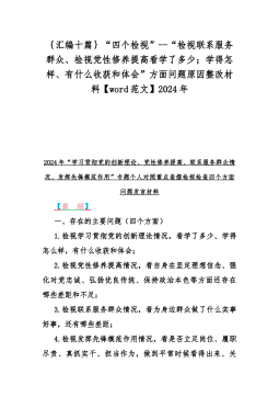 四个检视——2024年围绕“检视学习贯彻党的创新理论、看学了多少、学得怎样,有什么收获和体会、检视党性修养提高、联系服务群众、发挥先锋模范作用”等四个方面突出问题检视整改材料7篇word文
