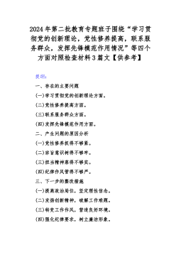 党支部领导班子2024年“严格组织生活、加强党员教育管理监督、抓好自身建设、执行上级组织决定、联系服务群众”等六个方面存在问题不足原因整改材料3篇文【供参考】2024年党支部班子“执行上级组织决定、严格组织生活、加强党员教育管理监督、联系服务群众、抓好自身建设”等方面存在的原因整改材料检查材料对照以下方面:(一)组织开展主题教育方面(二)执行上级组织决定方面(三)严格组织生活方面(四)党员教育管理方面(五)联系服务群众方面(六)抓好自身建设方面本次组织生活会聚焦的议题是深入领会习近平新时代中国特色社会主义思想,本会议以学习思想、增强党性、注重实践、创造新功为核心要务,针对凝聚人心锻造灵魂之基、...